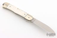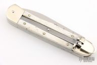 This leverlock auto by Hubertus features a mirror polished blade, nickel silver double bolsters, white bone scales, nickel silver liners and brass pins. Opens with a nice snap. Very fast opening. Comes with original box and papers. New condition.