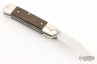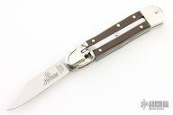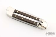This leverlock auto by Hubertus features a mirror polished blade, nickel silver double bolsters, green canvas micarta scales, nickel silver liners and brass pins. Opens with a nice snap. Very fast opening. Comes with original box and papers. New condition.