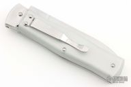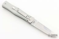This Leverlock Auto by Mikov Knives features a polished spear point blade with false top edge. The handle is comprised of steel bolsters, lever and pins with grey plastic scales over steel liners and backspacer. Strong leaf spring action. New condition. Comes with original box and papers.