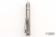 This knife by Zero Tolerance is an Emerson design. It features a two-tone blade with thumbdisc. The handle has natural canvas micarta scales, stonewashed titanium frame and tip up deep carry titanium clip, left or right reversible. Comes with original box, carbon fiber scales, original clip and papers. Excellent condition. s/n 3918