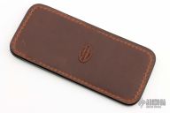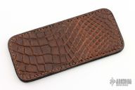 This leather slip sheath by Robertson Leather Works features hand dyed alligator skin. It is 5.5" long by 2.5" wide. New from maker at the 2024 Blade Show Texas.