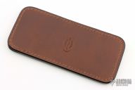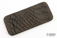 This leather slip sheath by Robertson Leather Works features hand dyed alligator skin. It is 5.5" long by 2.5" wide. New from maker at the 2024 Blade Show Texas.