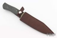 I have been making knives for over 28 years. I make my own Damascus, everything from random patterned to pattern-welded mosaic in my blacksmith shop in Warsaw, Missouri. I make all sorts of knives including hunters, small and large to small swords. I use 1084, 1095 spring steel, 15n20, and L6 tool steel in my Damascus. I prefer to use sambar stag and fossil ivories on the handles with nickel silver for the fixtures.