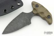 This Push Dagger by features a dark tumbled blade with a chisel ground blade with textured flats and a full tang construction.  .164" Blade Stock.  1.453" Blade Depth.  The handle has OD Green G-10 scales.  Includes the original box.  New from maker!