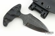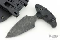 This Push Dagger by features a dark tumbled blade with a chisel ground blade with textured flats and a full tang construction.  .164" Blade Stock.  1.453" Blade Depth.  The handle has black G-10 scales.  Includes the original box.  New from maker!