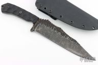 This knife by Stroup Knives features a dark tumbled drop point blade with sculpted flats and a full tang construction.  .261" Blade Stock.  1.960" Blade Depth.  The handle features sculpted G10 scales.  Includes a kydex sheath with a Tek-Lok.  Includes the original box.  New from Maker!