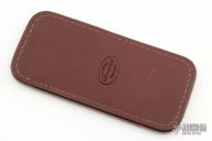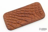 This leather slip sheath by Robertson Leather Works features tan alligator skin. It is 4.75" long by 2.25" wide. New from maker at the 2024 Blade Show Texas.