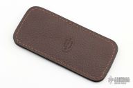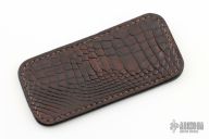 This leather slip sheath by Robertson Leather Works features brown alligator skin. It is 4.75" long by 2.25" wide. New from maker at the 2024 Blade Show Texas.
