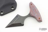 This BroadHead by Auxiliary Manufacturing features an acid tumbled double edged chisel ground blade with .136" blade stock and 1.114" blade depth. The handle has crazy fiber micarta scales with micarta pins. Comes with a kydex neck sheath, box and COA. New from maker at the 2024 Blade Show Texas.