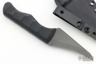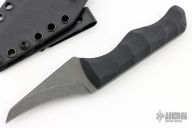 This Wild Card by Auxiliary Manufacturing features an acid tumbled blade with .109" blade stock and 1.329" blade depth. The handle has black G-10 scales. Comes with a kydex sheath with clip. New from maker at the 2024 Blade Show Texas!