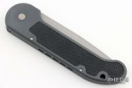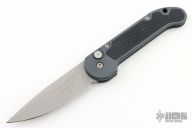 This LUDT side opening automatic by Microtech Knives has a bead blast finish blade. The handle has a black anodized aluminum frame with rubber inserts. Comes with long MT gold box and papers. Dated 12/95. Has a couple light scuffs, otherwise excellent condition.