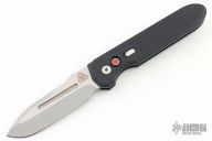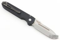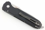 This Invictus by Pro-Tech is a Prometheus Design Werx design, it features a tumbled blade with satin finished flats and a notched thumbrest.  The handle has a black aluminum frame with a black stainless steel tip up clip, lanyard hole at the butt. Push button with red G-10 inlay and a safety.  Comes with original box and pouch. Excellent condition.