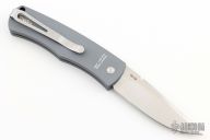 This Magic BR-1 Bolster Release Automatic from Pro-Tech Knives features a stonewashed 154-CM blade with swedge. The handle is comprised of a grey aluminum frame with checkered bolster. Stainless steel clip is positioned for tip up carry. Lanyard hole in the pommel. Prod Run 4 #386. Comes with original box and papers. Has a couple light scuffs, otherwise excellent condition.