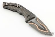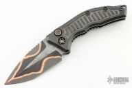 Home Products Medusa Auto - DLC Titanium W/ Frag Pattern Hand Ground Baker Forge Damascus Recurve Fat Carbon Snake Skin