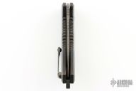 This Medusa by Heretic Knives features a Baker Forge Damscus tanto blade with false top edge, notched thumbrest. The handle has a frag pattern DLC titanium frame, Fat Carbon inlaid button, Fat Carbon snake skin inlays, DLC backspacer and a matching tip up titanium clip with ceramic ball. Comes with original box and COA dated 05/22 #026. Excellent condition.