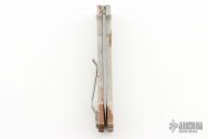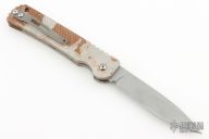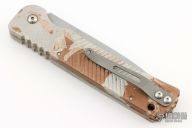 This Militia by Rob Dalton features a bead blasted drop point blade with serrations. The handle is comprised of a splash camo aluminum frame with bead blasted stainless steel pocket clip position for tip up carry, left or right reversible. Lanyard hole in pommel. S/N 0038. Comes with original box. Excellent condition.