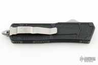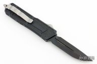 This QD Scarab by Microtech features a black finished double edged blade with standard edges. The handle is black aluminum with non-slip inserts, tip down SS clip and glass breaker. Comes with original box and papers. S/N 14130 and dated 01/2015. Has a couple light scuffs, otherwise excellent condition.