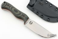 This Nomad EDC Bushcraft by Work Tuff Gear features a satin finished blade with .160" blade stock and 1.136" blade depth, full tang construction. The handle has textured black/green G-10 scales with orange liners. Comes with original box and sheath. Excellent condition.