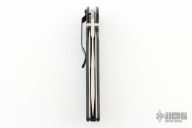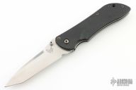 This Stryker by Benchmade has a satin finished tanto blade with dual thumbstud and a thumbdisc. The handle features black G10 scales over titanium liners, stainless steel clip, tip down carry. Has some scratches on the clip, otherwise excellent condition. This looks like a Gen 1 with a Gen 2 blade?