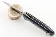 This Linerlock flipper features a satin finished blade with false top edge and flipper. The handle has Kirinite scales, titanium liners, kirinite backspacer, titanium pivot colars. Rides on bearings. Nice detent, lockup and blade seating. Includes a padded zippered case. Excellent Condition.