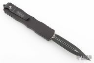 This Dirac Delta OTF automatic by Microtech features a D/E black blade with a standard edges. The handle is black aluminum with stainless steel tip down clip and hardware. Serial number 5728 and dated 03/2022. Comes with original box and papers. Excellent condition.