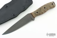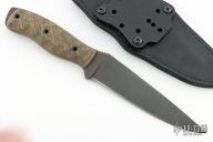 The Recon is a collaboration between Daniel Winkler and retired Special Operations Force professional Kevin Holland. Designed for belt carry on missions requiring serious action, Recon has a handle extension that provides an alternative to cutting or stabbing and can act as a glass breaker. Knife Specifications Blade steel: 80CrV2 Black oxide no-glare finish Blade length: 6" Overall length: 10 1/2" Blade thickness: 3/16" Skeletonzied full tang Thumb index file work Sheath Lined Kydex® with leather cover Designed for multiple carry options (See our Info page for carry options) Comes with original sheath. Excellent condition.