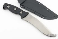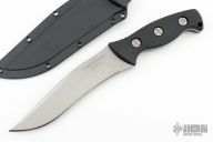 This HRT Hostage Rescue Team Combat Survival Knife by Smith & Wesson was produced by Taylor Cutlery. It has a 440C bead blasted blade with false top edge, .219" blade stock and 1.735" blade depth, full tang construction with black aluminum scales. Includes original box, molded sheath with belt clip and hardware. Excellent condition.