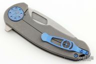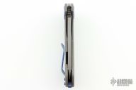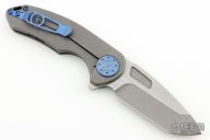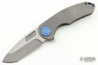 This F3 by Curtiss Knives features a stonewashed blade with notched thumbrest and flipper. The handle has a tumbled titanium frame with a matching tip up titanium clip. Anodized hardware. Rides on bearings, nice detent and lockup.  Comes with original box and COA. Excellent condition.