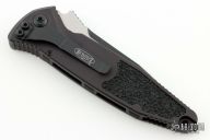 This Socom Elite Auto from Microtech has two toned drop point blade with notched thumbrest. The handle has a black aluminum frame with non-slip rubber inserts and a tip down stainless steel clip, black hardware. Dated 12/2021 and S/N 7562. Includes original box and paperwork. Excellent Condition.