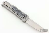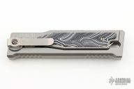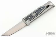 EXO Mini Gravity knife. Tanto blade, titanium handle, Black/White G10 Damascus Pattern inlays. Comes with original box, and accessories. S/N 612 dated 08/2023. New condition.