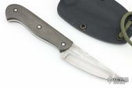 This Peshkabz Necker by Bud Nealy features a compound ground Meier Steel San Mai Damascus blade with full tang construction, .116" blade stock and .870" blade depth. Carbon Fiber scales. Includes kydex neck sheath. Excellent Condition. #4731