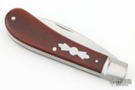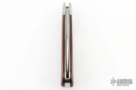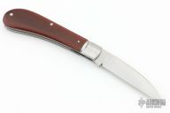 This Wharncliffe Trapper by Charlie Bell features a satin finished blade with nail nick. The handle has satin finished 416 stainless steel bolsters with integral liners, old green canvas micarta covers with stainless steel escutcheon, CPM154 spring. Has half-stop, flush in all positions. Comes with zippered case. New from maker.