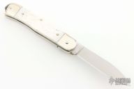 This leverlock auto by Hubertus features a mirror polished blade, nickel silver double bolsters, white bone scales, nickel silver liners and brass pins. Opens with a nice snap. Very fast opening. Comes with original box and papers. New condition.
