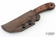 SD1 (STANDARD DUTY 1) For some tasks smaller is better and, often, legal for carry in areas/situations where knife regulations are rigid. SD1 has a trailing point, is light weight and well balanced, and provides extreme cutting performance from a 3” blade.  All leather sheath has a tension screw for adjustment. The Discreet Carry clip can be moved from side to side to accommodate left or right hand  and inside or outside waist band carry.