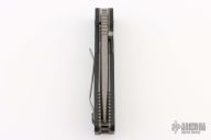 Tactical folder made by Buck with Strider engineering. Bead blast finished tanto blade with notched thumbrest and dual thumbstuds. The handle has black G-10 scales, bead blasted titanium liners, tip up stainless steel clip. Comes with original box and papers. Excellent condition. First production run #048 of 500