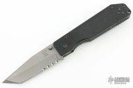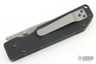 Tactical folder made by Buck with Strider engineering. Bead blasted tanto partially serrated blade with notched thumbrest and dual thumbstuds. The handle has black G-10 scales, bead blasted titanium liners, tip up stainless steel clip. Comes with original box and papers. Has a couple light scuffs, otherwise excellent condition.