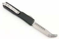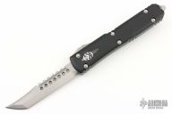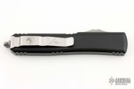This Ultratech by Microtech Knives features a stonewashed Hellhound blade with satin flats and false top edge. The handle has a black aluminum frame with tip down blasted stainless steel clip and hardware. Comes with original box and papers. 04/2022, S/N 135. Excellent condition.