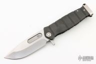 We believe we’ve come up with the best folding companion to the classic Marine Utility knife on the planet. The knife is a perfect companion piece to the fixed “Fighter” and we call it the, “The Fighter Flipper.”. This a big manly knife that’s as comfortable working, as it is cruising around town in your pocket. There is so much going on with this knife its hard to take in: from the retro milling on the handles, drop-point blade, integral pommel to the bearing pressed into the one-of-a-kind pocket clip. There truly is NOTHING like the Fighter Flipper™ in the knife world. You will want to chop, stab and smash something with this beast in your hand so proceed with caution… Comes with original box, papers and hard case. Excellent Condition.