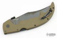 This Espada Lockback Folder has a black upswept blade with thumb disk. Handle is green G10 with black stainless steel lock, black fiber back spacer, and black stainless steel tip up (RH/LH reversible) clip. Has some wear on the clip, otherwise excellent condition. Comes with original box.