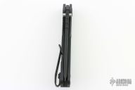 This Strider SNG framelock folder features a black tanto blade with thumbhole and notched thumbrest. The handle has an black G-10 and black titanium frame with titanium clip, tip up carry. Jimping on blade spine. Nice lockup, and blade seating. Excellent condition.