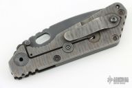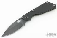 This Strider SNG framelock folder features a black blade with thumbhole and notched thumbrest. The handle has an black G-10 and flamed titanium frame with titanium clip, tip up carry. Jimping on blade spine. Nice lockup, and blade seating. Has scuffs and scratches, has been resharpened, otherwise good condition.