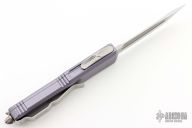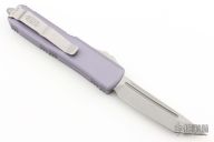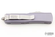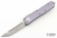 This UTX-85 by Microtech features a tanto blade with fullers and a stonewashed finish. The handle has a grey aluminum handle with bead blasted hardware, tip down stainless steel clip. Excellent condition. S/N 64606. Dated 03/2021. Excellent condition.