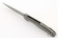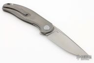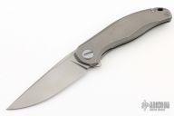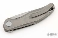 This Stellar by Shirogorov has a bead blasted blade with notched flipper. The handle has a tumbled titanium frame, tumbled titanium backspacer and tip up clip with hidden screws. Rides on MRBS, nice detent, lockup and blade seating. Comes with original box and COA. Excellent condition.