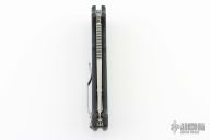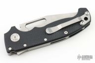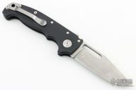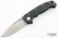 This AD20 by Demko Knives features a stonewashed clip point blade with notched thumbrest.  The handle has a black G-10 frame with a tip up stainless steel clip and "Shark" lock release on the spine. Comes with original box.  Excellent condition.