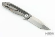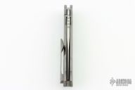 Based off of my Custom slim EDC Fixed Blade Tanto, this slim and easy to carry Tanto flipper has 3-section Carbon Fiber Inlays on the presentation side and large carbon fiber inlay on the lockside because I’m not a fan of bare backsides on a framelock. That’s too boring. The 6AL4V titanium frame is gently contoured for comfort with a prominent finger choil up front by the blade as well as a mini finger choil at the butt-end for your pinky. The titanium backspacer features a hidden lanyard opening sleekly hidden away and the Titanium pocket clip is the same contoured clip[ from the Caladan which completely eliminates hot spots. The flat-faced pivot is radial machined satin finished and is captive so that it won’t spin if you make pivot adjustments from the other side. The S90v steel blade is in an aggressive compound grind which gives excellent cutting & slicing at the main bevel while providing a strong & supported tanto tip. The unique short top swedge ground only up at the tip end of the blade mimics a special look that I only did on a coupe of custom Scaphoids that I made a few years ago. As usual, Tuya has been able to bring my ideas to life in incredible detail with incredible machining and careful finishing and the smoothest/snappiest action. The Scaphoid is a level up in all areas and pushes Tuya into higher end production, more premium knives.