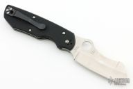 This Jason Breeden designed Rescue from Spyderco features a modified sheepsfoot style blade with false top edge, thumb hole and notched thumb ramp. The handle is comprised of black G-10 over stainless steel liners and barrel spacers. Lanyard tube in pommel. Black coated 4 way reversible stainless steel pocket clip. Comes with original box and papers. Excellent condition.