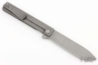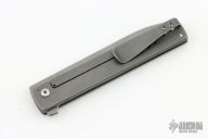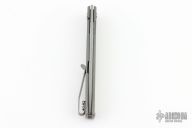 This Framelock Flipper by Brad Zinker features a tumble finished blade with a flipper. The handle has a tumble finished titanium frame with a matching tip up clip. Nice detent, lockup and blade seating. Excellent condition.