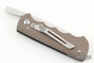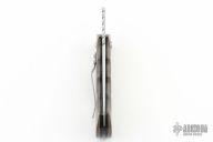 This friction folder by David Lancaster Clark features a satin finished blade and a G-10 frame with black G-10 liners, G-10 backspacer. File-worked blade spine. Steel tip down pocket clip. New from maker!