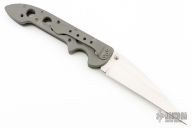 This knife features a satin finished wharncliffe blade with dual thumbstuds. The handle has bead blasted titnaium scales, bead blasted titanium liner, bead blasted stainless backspacer and a tip down bead blasted titanium clip. Nice lockup and blade seating. Has some scuffs, otherwise excellent condition. Comes with a zippered case.