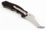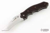 This Triumph Assisted Opening Folder by Crawford Knives features a satin finished blade with fullers and dual thumbstuds. The handle has black linen micarta scales, bead blasted titanium liners, stainless steel backspacer, tip down stainless steel clip. Nice action, lockup and blade seating. Comes with a zippered case. Has a few light scuffs, otherwise excellent condition.